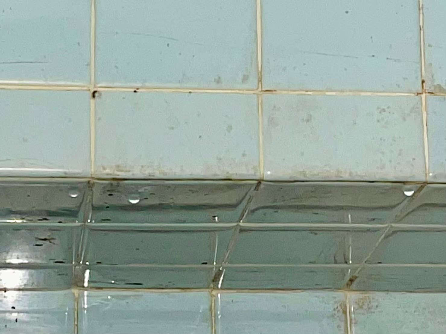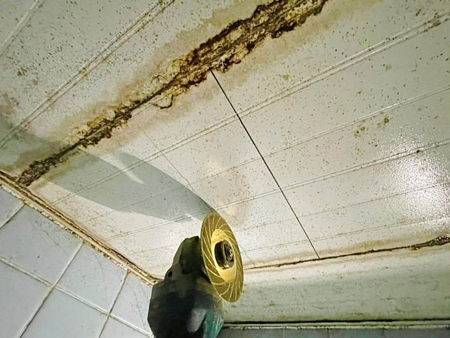 被害場所の浴室天井から水がポタポタ落水していて、床は濡れていて、全体的にひどくカビが生えていました。