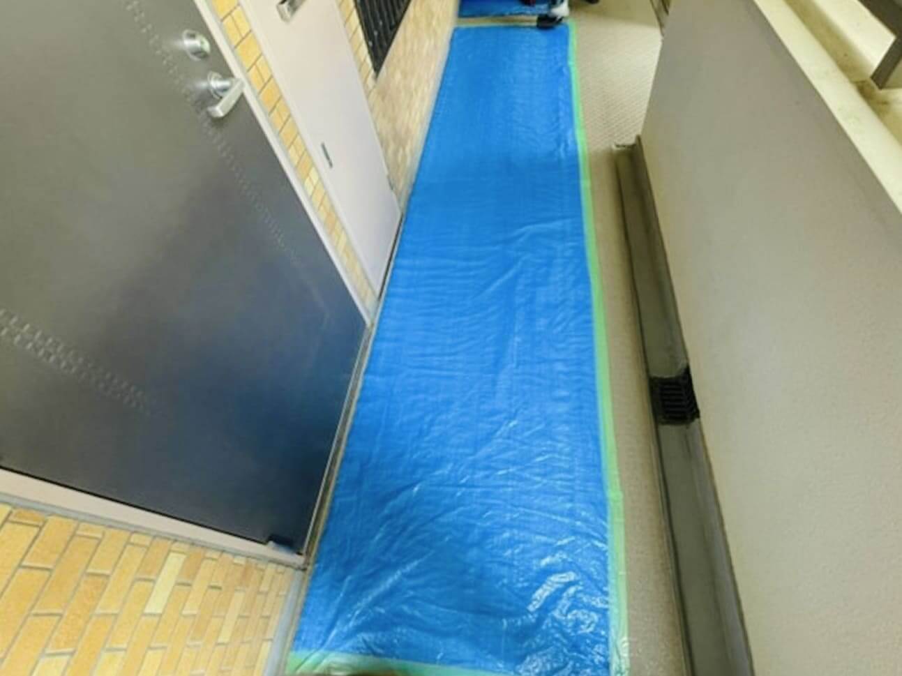 住人さんはゴミ袋の上にバケツを置いたり、バスタオルを数枚敷いたりして養生していました。