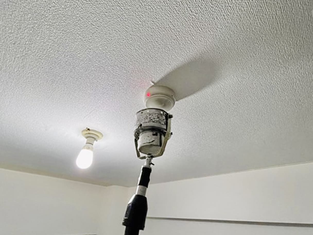 被害宅の漏水箇所の真上付近である廊下側に向けてカメラを挿入しました。