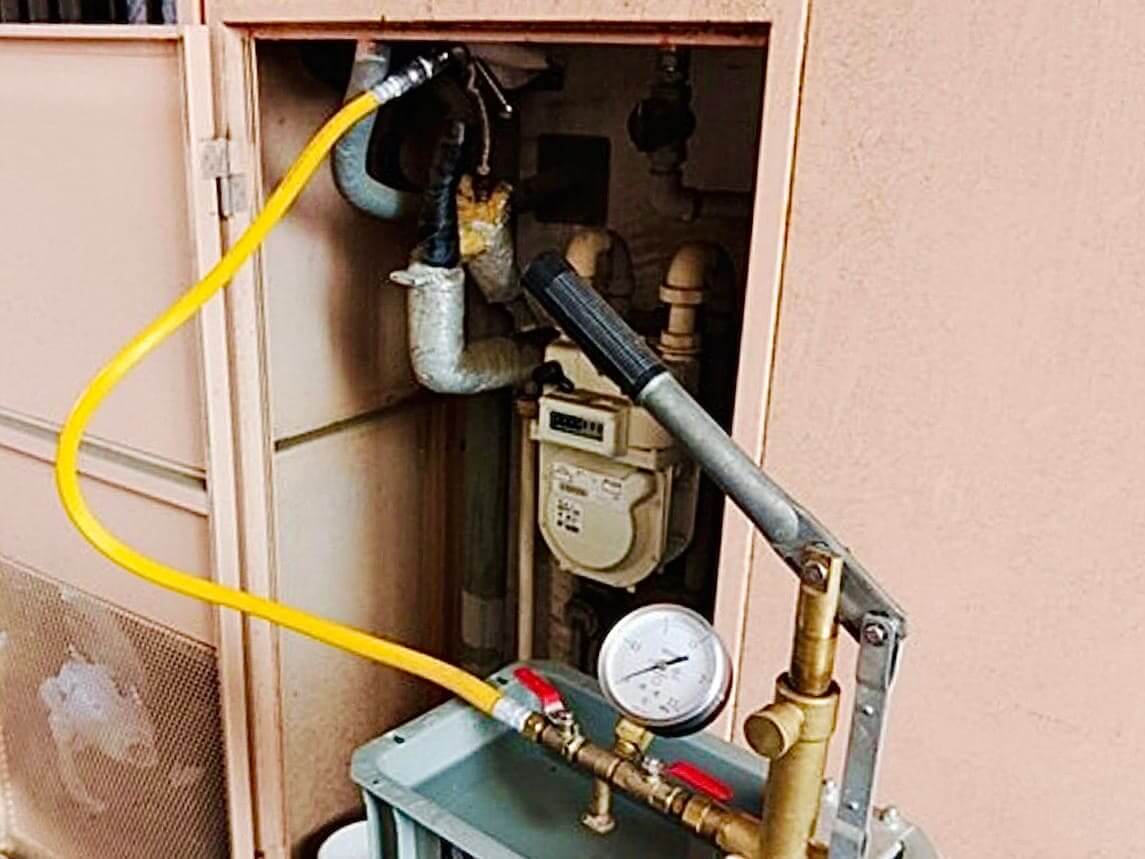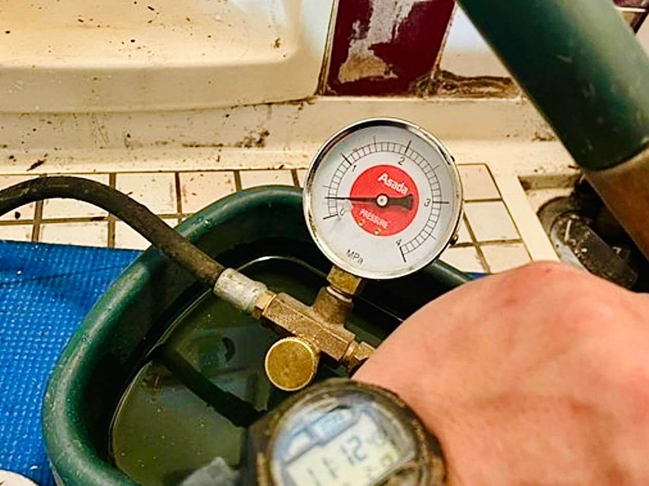 給水管と給湯管に耐圧テストを行い、給湯管の圧力低下を確認しました。