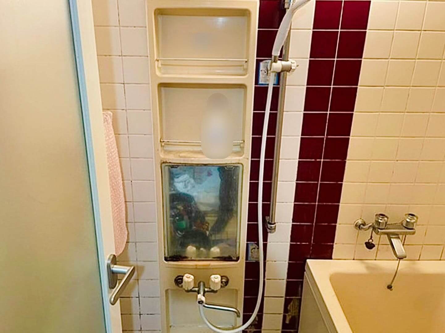 加害宅の住人さんが浴室の壁の中から流水音が聞こえたとおっしゃっていたので、まずは浴室を調査することにしました。