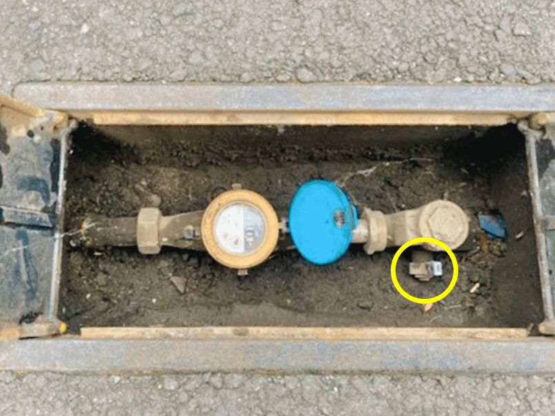 水の使用量を計測する水道メーターの近くに、元栓を閉めるバルブが設置されています。