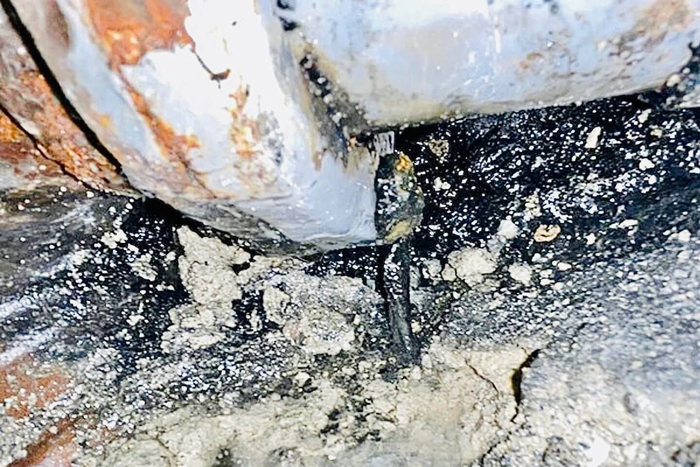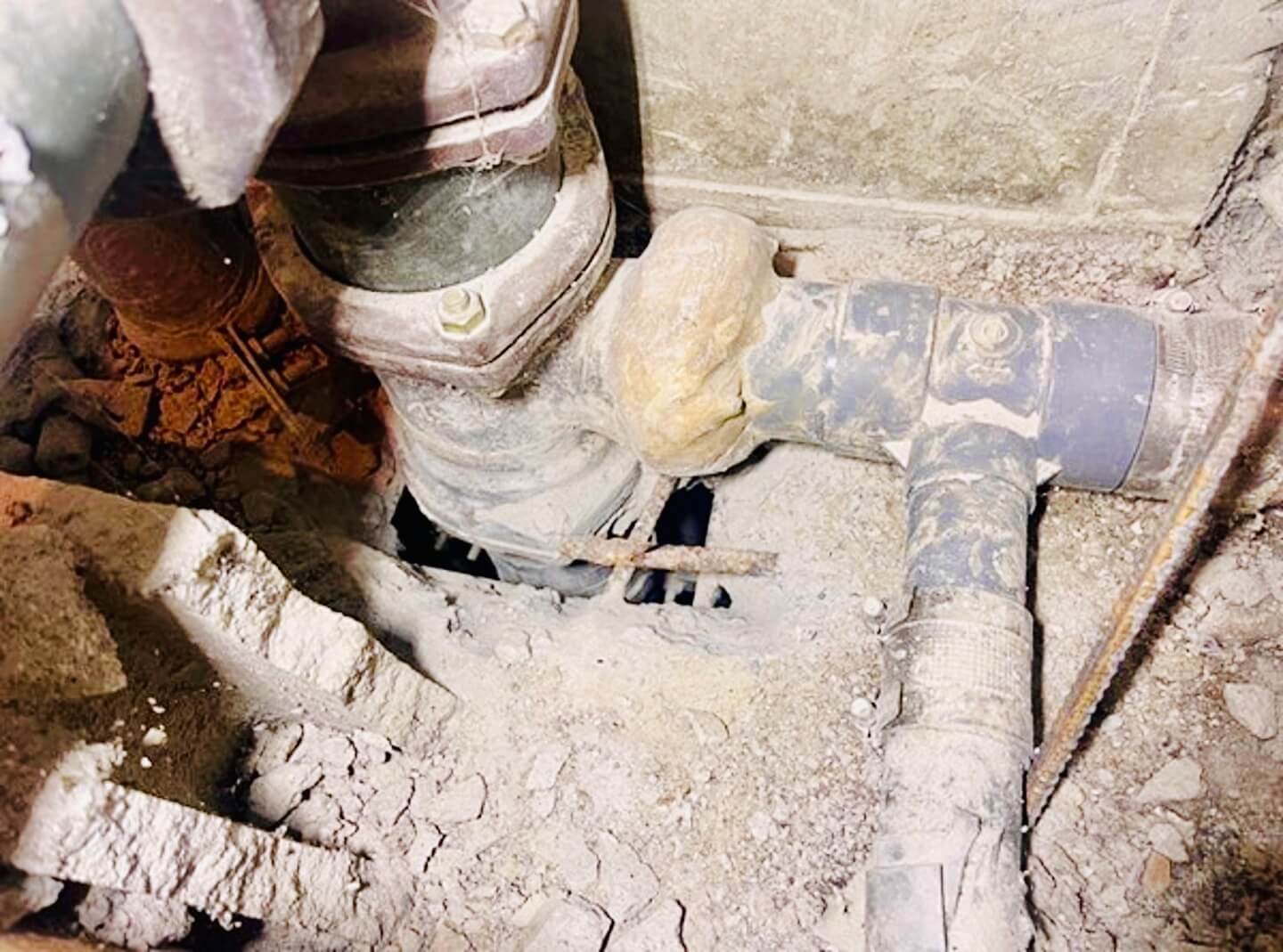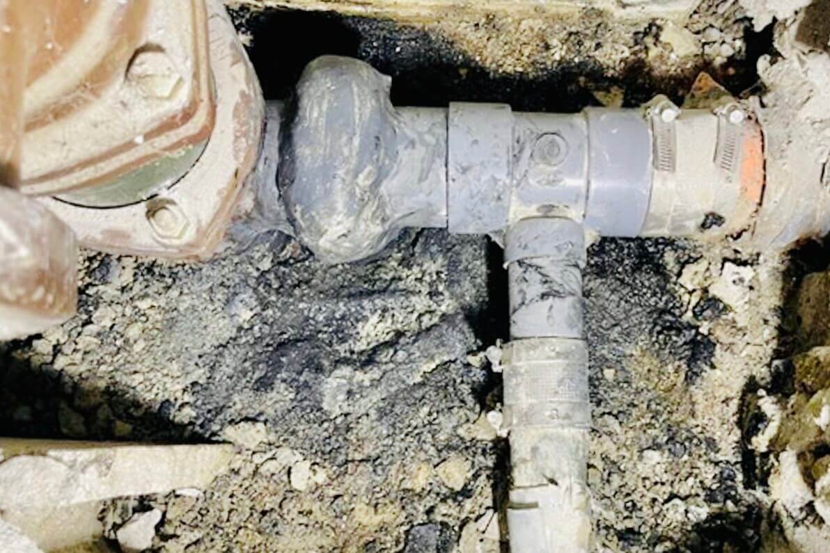 調査当日は、漏水原因配管の接続部周りを水中ボンドで充填することで臨時補修を施工しました。