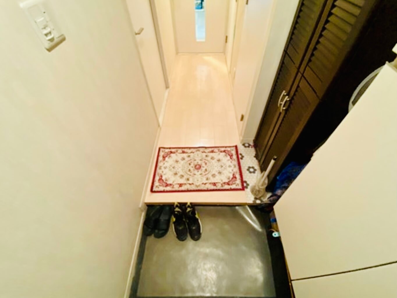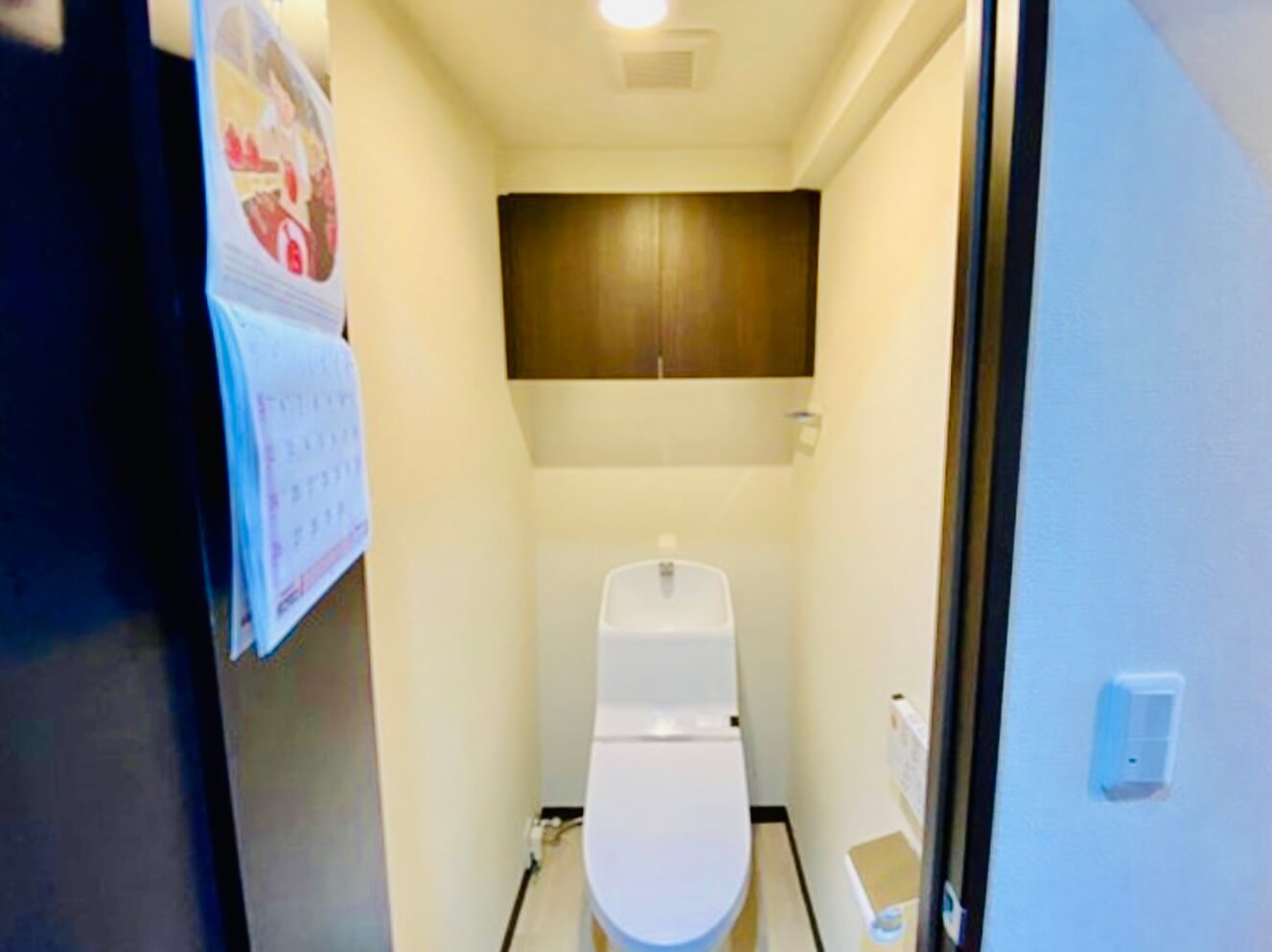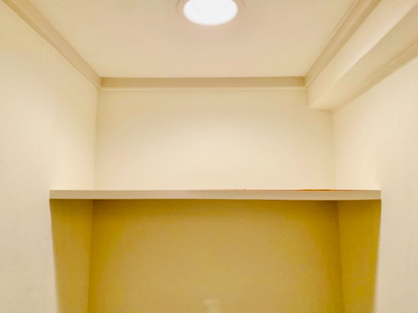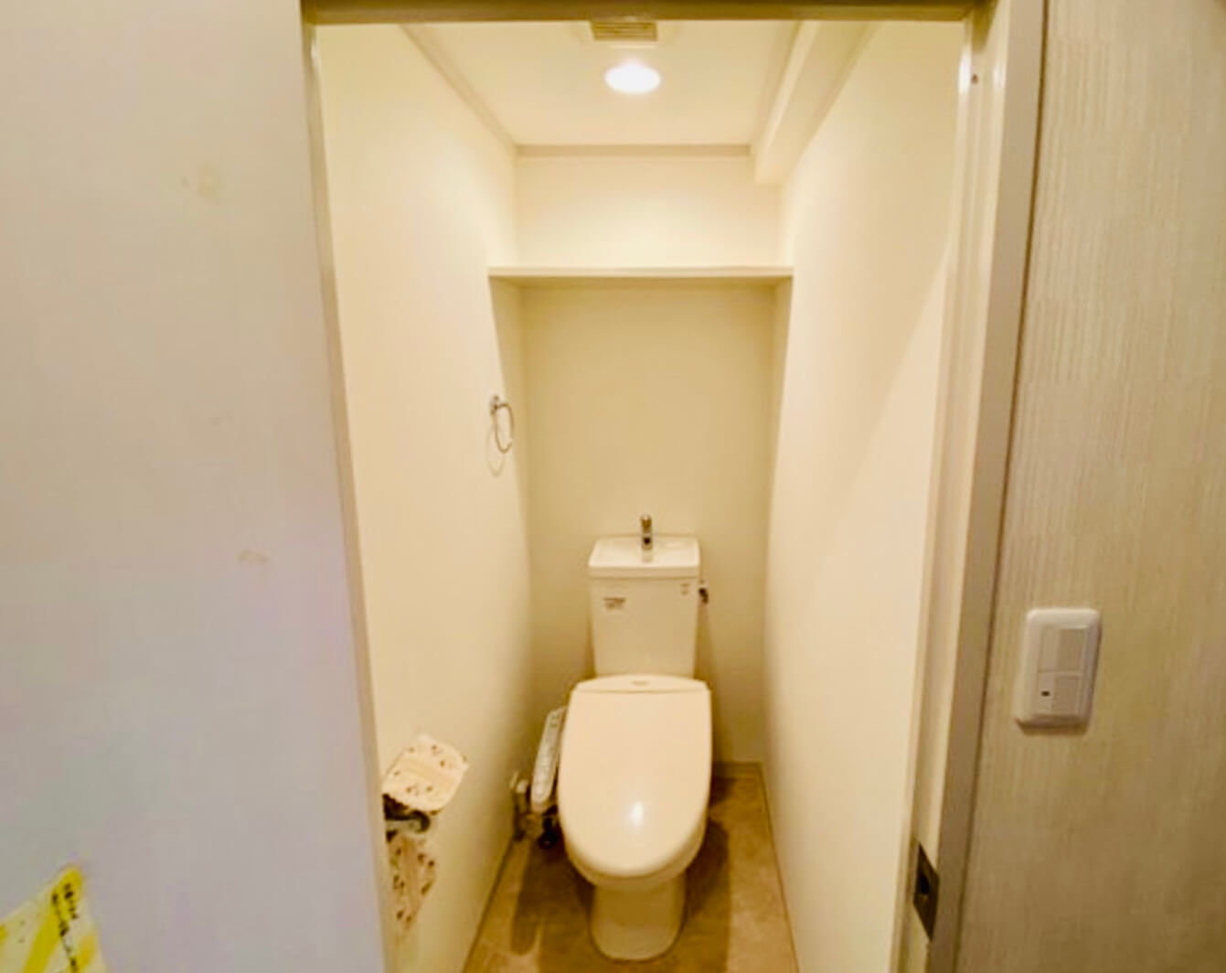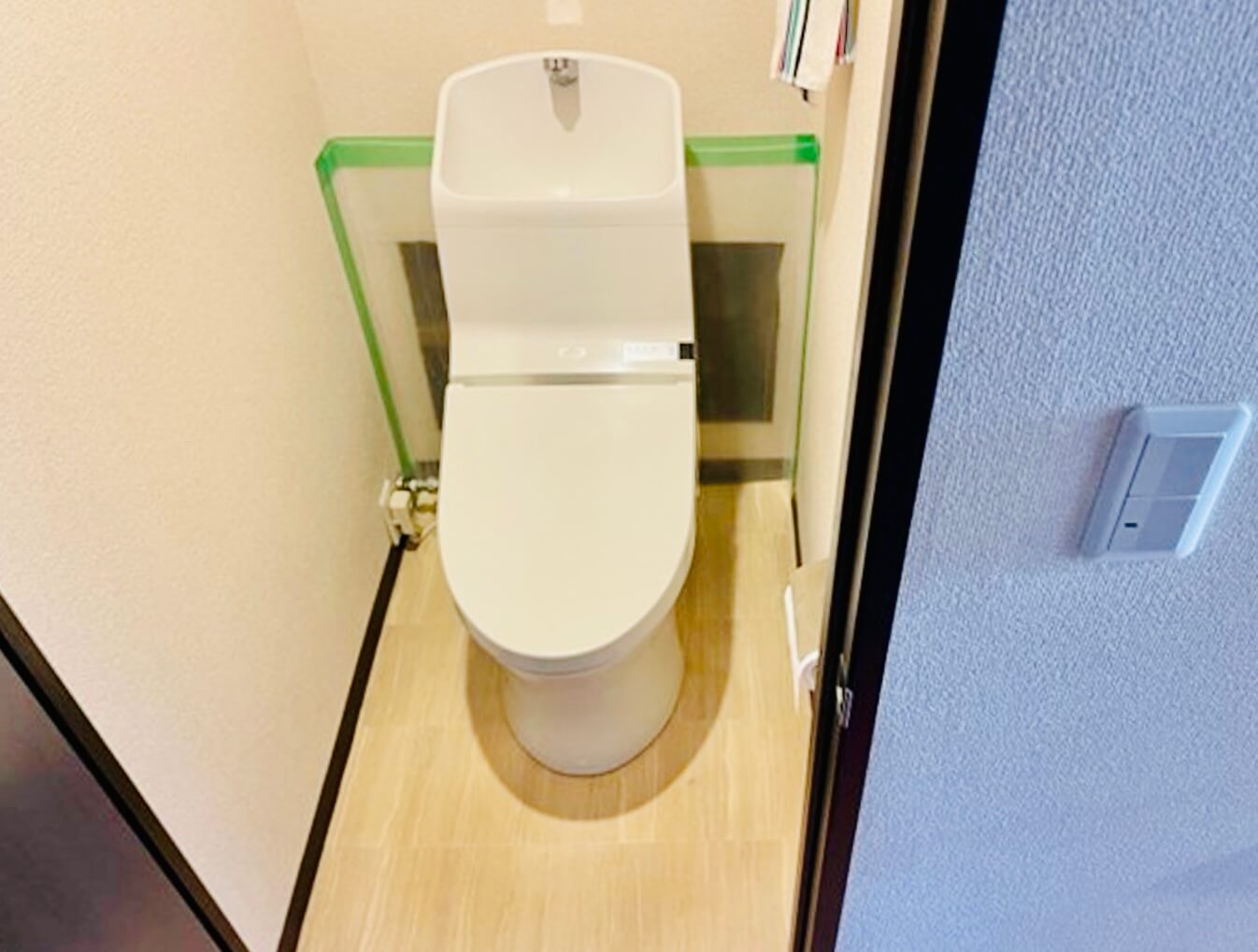 荷物の移動経路を養生して、配管改修工事のために開けたトイレ壁の復旧工事を行いました。