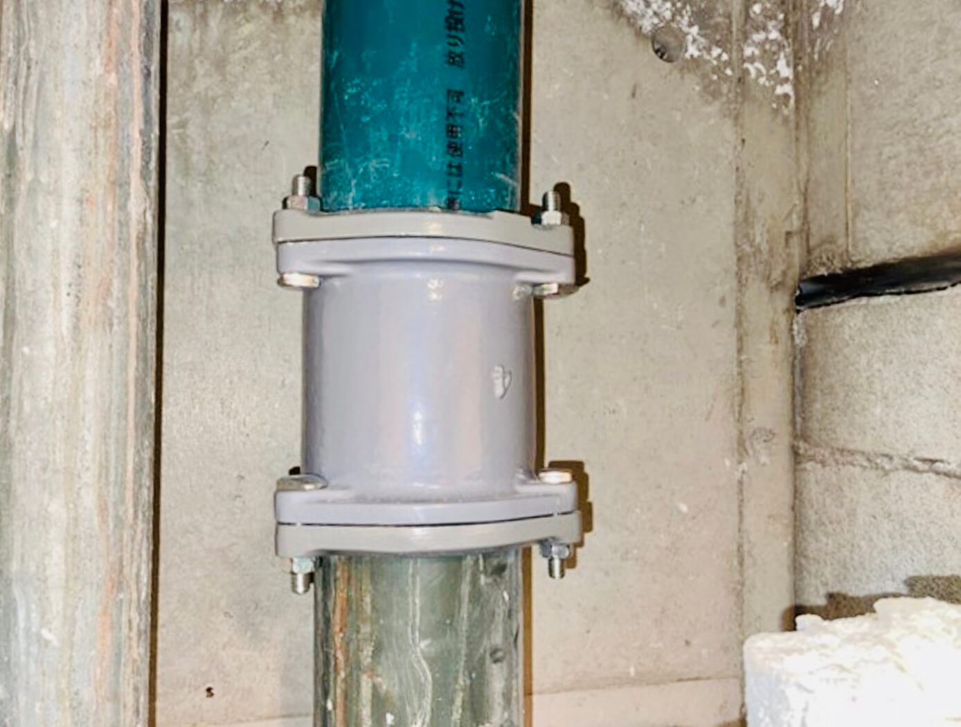 吸引機で水を抜いてから配管を確認すると、共用竪管の接続部にサビによる数か所の小さい穴が開いていました。