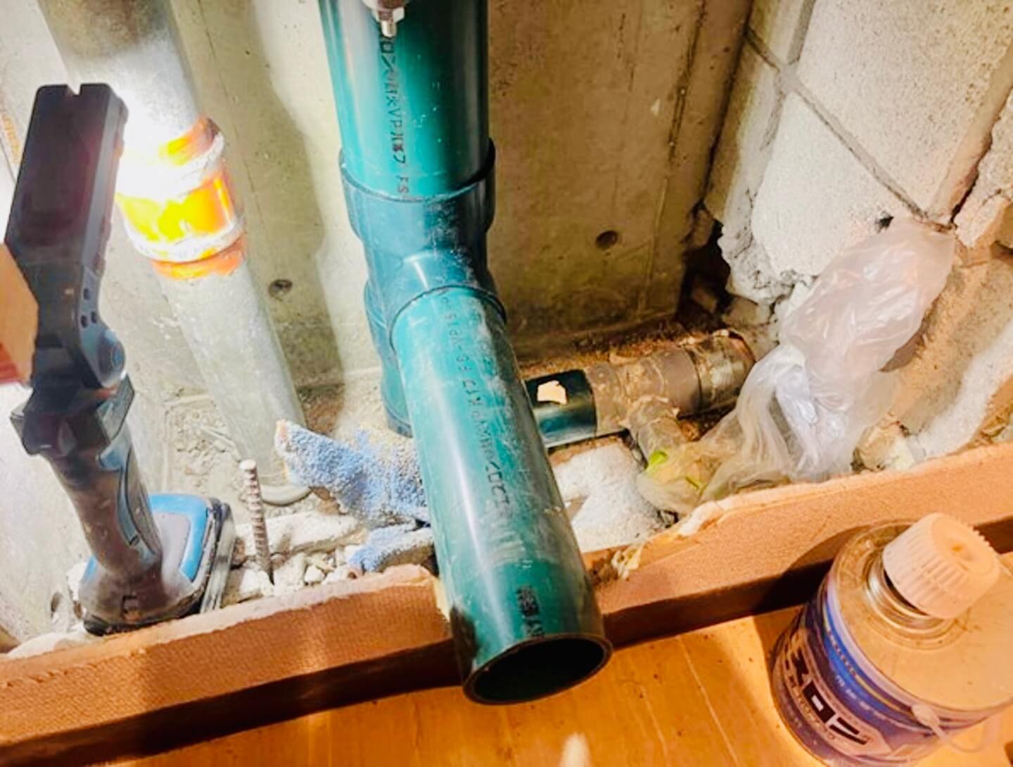 サビていた既存排水配管を腐食に強いVP管に交換して、上下階の排水管改修工事を完了しました!