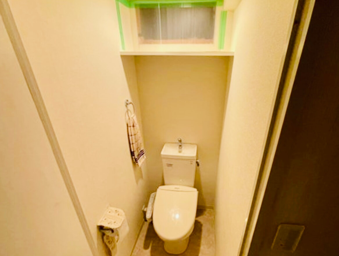 トイレは開口部の回りに補強用の木軸をつけて新規ボードを張りました。