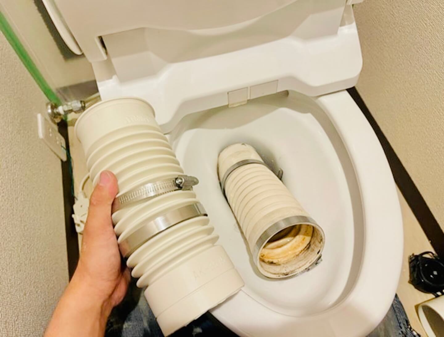 加害宅はお客様の希望で、便器と排水管の継ぎ手のアキレスジョイントを交換しました。