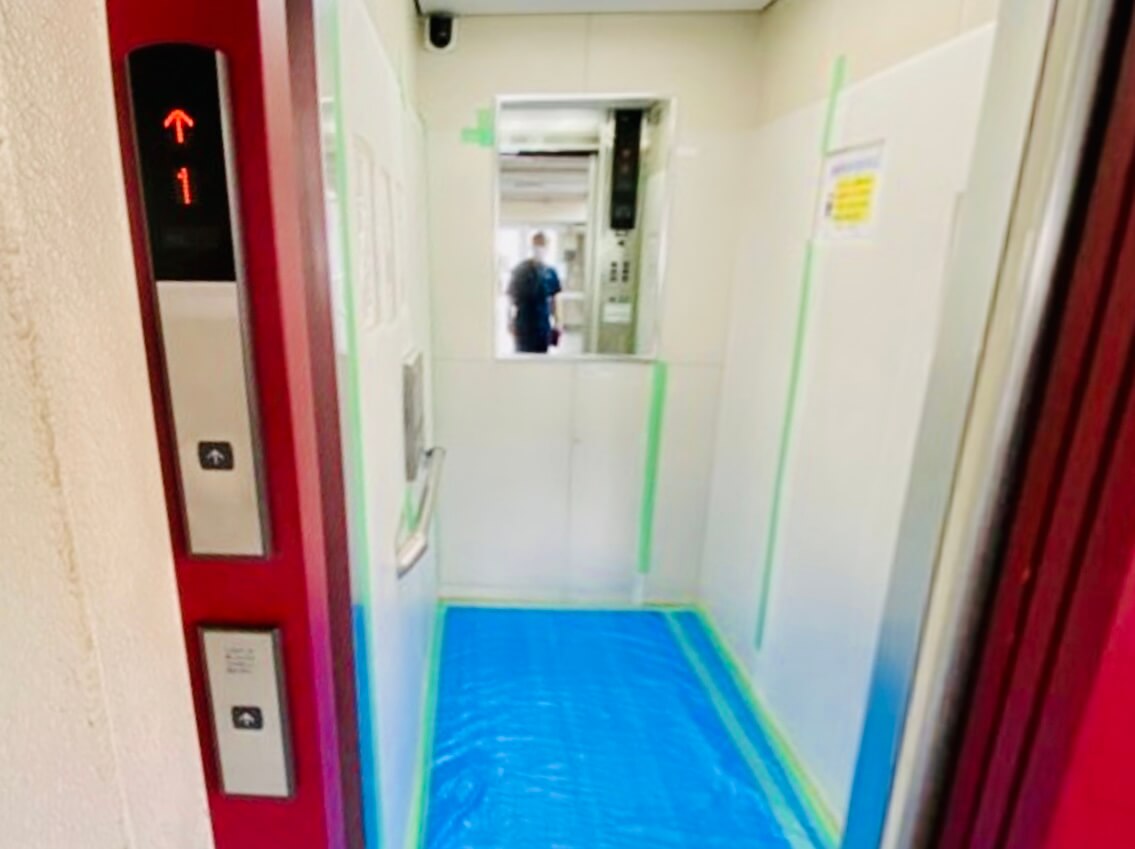 共用廊下とエレベーターの養生を撤去して清掃して、被害復旧の内装工事を完了しました。