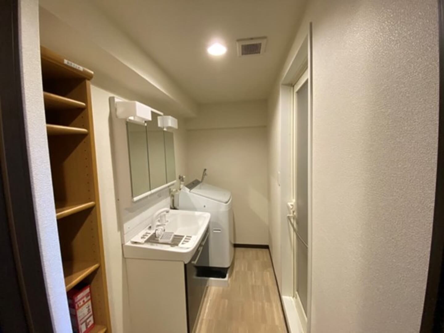 洗面所は天井クロスははがさず、壁クロスだけ剥がして新規クロスに張り替えました。