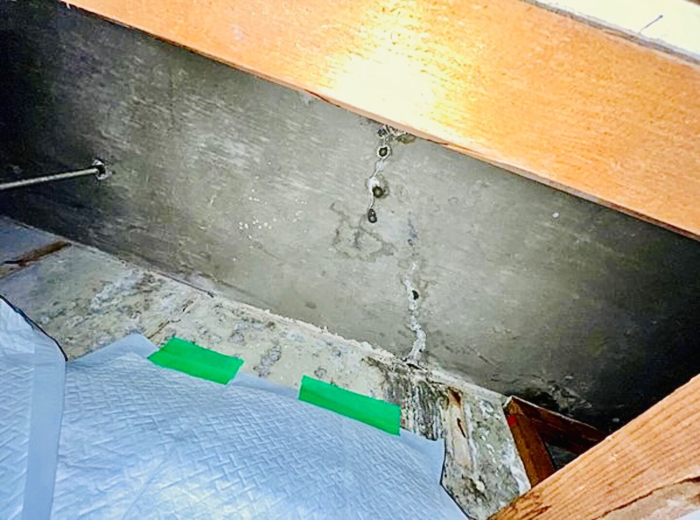 調査当時も換気扇上の天井スラブから落水していたので、至急に漏水原因を探す必要がありました。